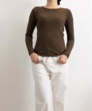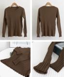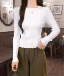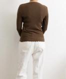 シンプルながらも女性らしさを引き立てるデザインが魅力のリブニットトップスです
