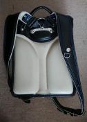 黒ベースに、青の縁どり、ステッチがカッコいいデザインです。