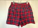 赤と黒のチェック柄が特徴のショートパンツです。カジュアルでありながらスタイリッシュな印象を与えます。