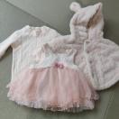 このセットは、ドレスとアウターの組み合わせで、様々なシーンに対応可能。お出かけやお祝いの場にも最適です。