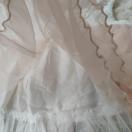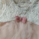 リボン付きのピンクのドレスは、特別な日や普段使いにぴったりです。フリルが施されており、動くたびに可愛らしさが引き立ちます。