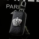スタイリッシュなクラウンクロコダイルパターンフェイクレザーキーケース、安全ジッパー付き - コンパクトで耐久性のある男性と女性のためのカーキーホルダー