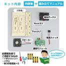 キット内容:組み立てマニュアル、組み立てキット(土台パネル、スピーカー、電池ボックス、通信モジュール、電源スイッチ、4mmネジ、7mmネジ),