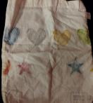 ハートや星などのイラストは布用クレヨンで描かれたもの。