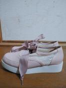 サテンのリボンにレースのとっても可愛いスニーカーです。サイズが大きいため出品させていただきます。Lサイズなのですが、だいたい24.5センチから25センチくらいになります。