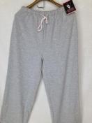スウェット素材のグレーのルームウェアパンツ、ウエストゴムとドローストリング付きで快適な着心地。