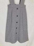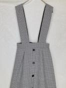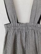 グレンチェック柄のサロペット、前面飾りボタン付きでスタイリッシュ。