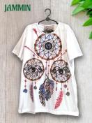 Tシャツ/アジアン/エスニック/サイケ/ヒッピー/サイケデリック/個性派Tシャツ/トライバル/インディアン/ネイティブ/羽根/Lサイズ/ドリームキャッチャー/目/眼締切日時
