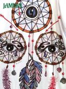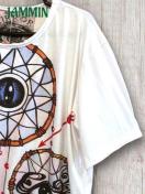 悪夢を取り去ると言われているドリームキャッチャーに眼が描かれているイラストプリント入りTシャツです。