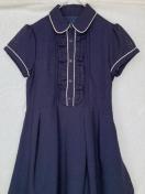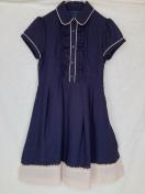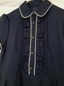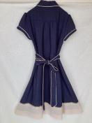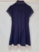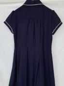 ネイビーの半袖ワンピース。