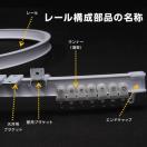 内容物:カーテンレール×1、ランナー×16、固定用ネジ×6、アンカー×6、天井用ブラケット×6、壁用ブラケット×6、エンドキャップ×2,
