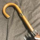 ハンドルがウッドで石突きはメタル、ネームバンドにメタルのCELINEロゴ、ハンドルにもメタルロゴがあります。