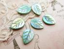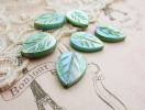 ミントグリーンに染められた葉っぱ型のシェルビーズです。