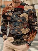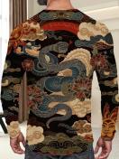 男性用長袖Tシャツ、中国風の蛇柄が特徴で、2025年の蛇年の祝賀会に合わせてスタイリッシュにペアされます。