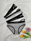 女性用6枚セット かわいいスマイル文字プリントブリーフ - 通気性と快適なナイロン混紡パンティー、透けない