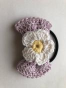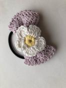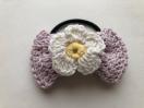 ラメ入りコットン糸でリボンを編んでヘアゴムを作りました。