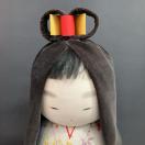 布製で作られたこの人形は、手触りが良く、耐久性にも優れています。長い黒髪と華やかな髪飾りが、全体の美しさを引き立てています。