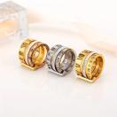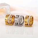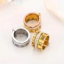 スタイリッシュなメンズステンレススチールトリプルリング、ラインストーンアクセント付き - ヴィンテージ風ローマ数字、パーティーに最適