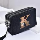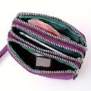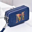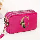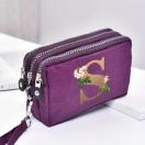 シックなピンクの女性用トリプルレイヤージッパーウォレット、フローラルプリント「A」デザイン - 防水ナイロン、マルチコンパートメント携帯電話バッグ、リストストラップ付き、手洗い可能、携帯電話用財布