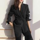 黒スーツ30代通勤/ライトアウター韓国/大人上品長袖着やせ