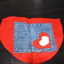 ほわほわの暖かそうなフエルト生地に、デニム生地と、かわいいハートモチーフを付けました!