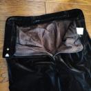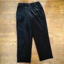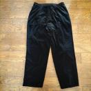 柔らかいベルベット素材の黒スラックス、ウエストゴムで快適な着心地。