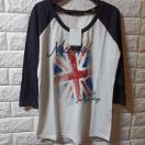 ユニオンジャックのプリントされたラグラン七分袖のカットソー。締切日時