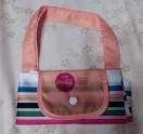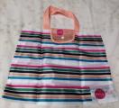 コカラフルなストライプデザインの折りたたみエコバッグ。