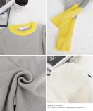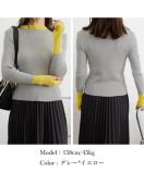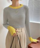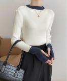 遊び心あふれる配色カラーが魅力のニットトップスです