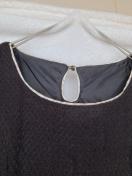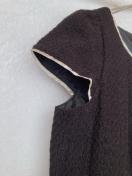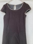 商品説明テクスチャーのある黒いキャプスリーブワンピース、キーホールバックデザイン。