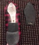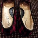 赤と黒のチェックのツイードのオペラパンプス