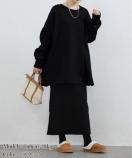 暖かいプルオーバー/体型カバートップス/スリット入り着やせ
