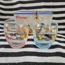 ピングーがパイナップルと洋ナシで青、ピンガがバナナとリンゴでピンクのグラス。