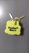 大きさ(金具部分を除く):3.3×2.8cm。シリコンラバーのような材質です。