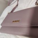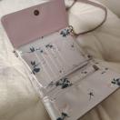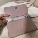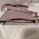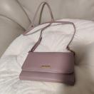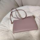 合成皮革製のピンクのショルダーバッグ、花柄内装でスタイリッシュ。