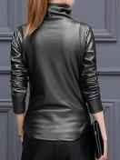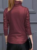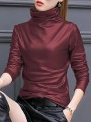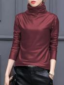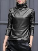 【シーズン万能】エレガントなレディース長袖PUスウェットシャツ - ハイネック、無地、伸縮性のある生地、透けない - すべての季節に最適