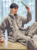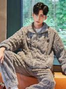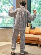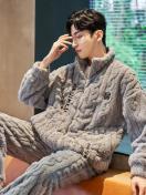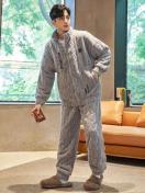 メンズパジャマ 冬用フランネル厚手ベルベット ホームウェア 秋冬用暖かいコーラルベルベット ジッパー付き2点セット