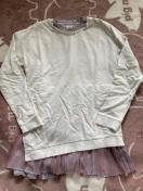 春秋向けです。着用5回ぐらいですが袖の内側?に2箇所薄ら黄色っぽい汚れあります(画像あり)染み抜きで落ちるかもしれませんし見えない場所ではあります。チュールが薄紫とピンクの2枚重ねになってます。サイズ150です。締切日時