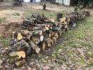梨畑の桃の木を伐採し、30センチから40センチ程度玉切りして、道路近くに集めて積んであります。