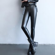 デニム風 裏起毛 レギンス スパッツ キラキララインストーン付き 英字柄 ネイビー 大きいサイズ