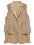 しっとりとしたフェイクレザーとフェイクファーをレイヤードしたトレンド感たっぷりのロングベスト。