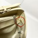 バッグ内部にノリ染み(画像赤丸)、外側に目立たないスレがございますが、型崩れもないきれいな商品です!