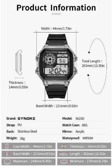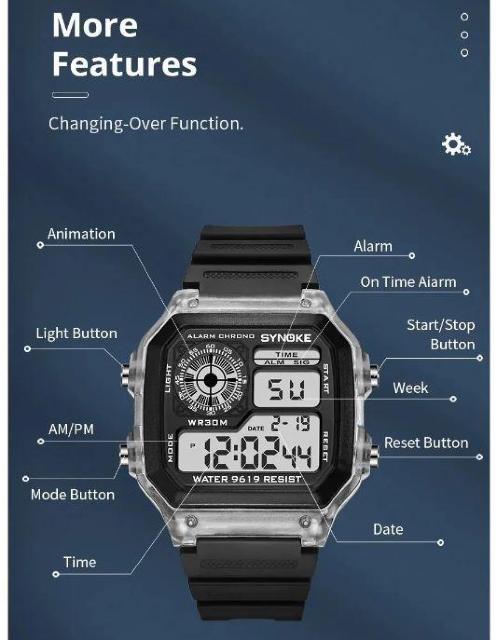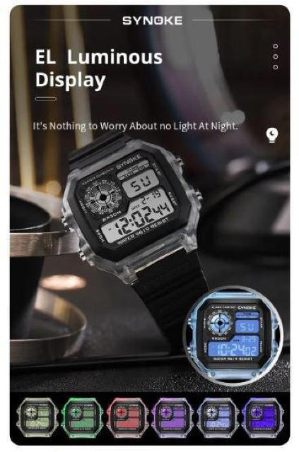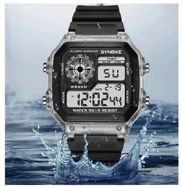 送料無料 未使用品 透明な白 SYNOKE スポーツデジタル 防水 ユニセックス デジタル腕時計 7種のバックライト Transparent white