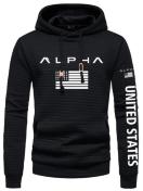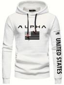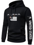 アルファ フラッグプリントメンズフーディー、ストレッチ性、スリムフィット、春秋