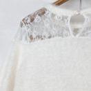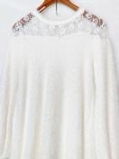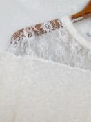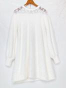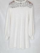 レースディテールのホワイト長袖ワンピース、カジュアルでひざ丈のデザイン。