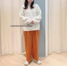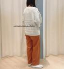 曲線のクルーネックは女性らしい柔らかな印象を与えてくれます。