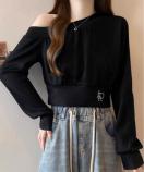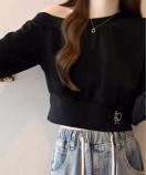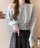 オフショルダーでヘルシーな肌見せが魅力のライトスウェットトップスです