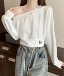 おしゃれカットソー/細見えトップス薄手/アンシンメトリー服