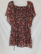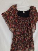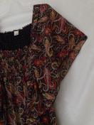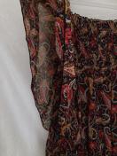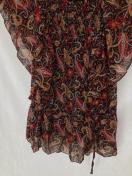 ペイズリー柄のシフォン素材で、フレアスリーブとシャーリングデザインが特徴のトップス。