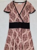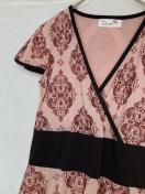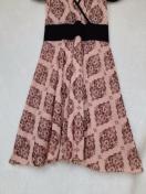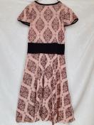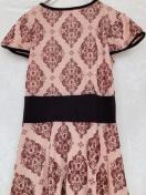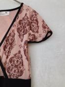 クラシカルなフロッキープリントのキャプスリーブひざ丈ワンピース